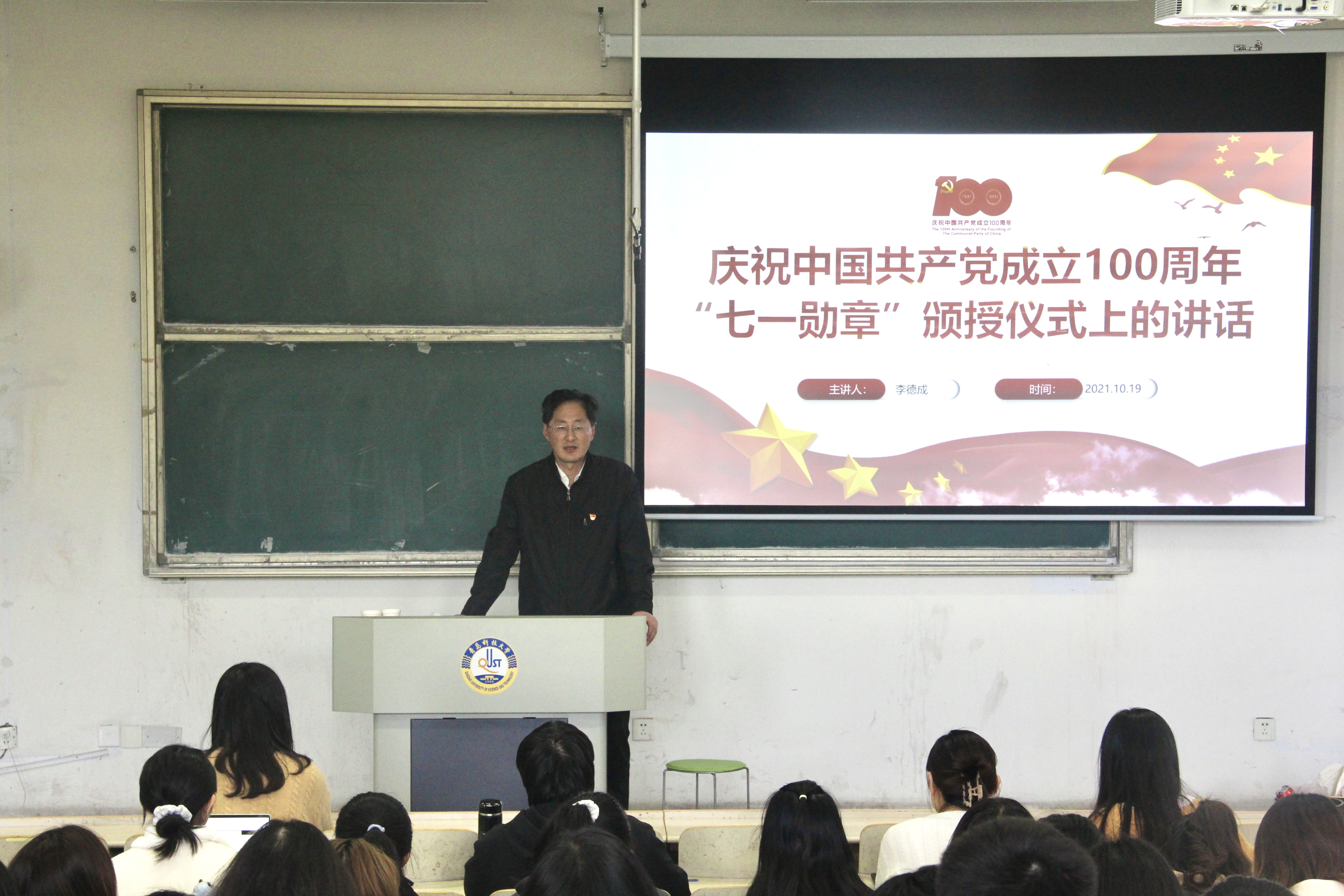 在“牢记初心使命 不懈奋勇前进”专题党课讲授中,李德成围绕习近平总书记在“七一勋章”颁授仪式上的讲话精神,详细讲解了“七一勋章”获得者的感人事迹和崇高品德,引经据典地为同学们阐释了党带领广大人民群众从开天辟地到改天换地,从翻天覆地到惊天动地的伟大历程,勉励同学们坚定理想信念、坚定奋斗意志、坚定恒心韧劲,在民族复兴的伟业中为党和人民建功立业。