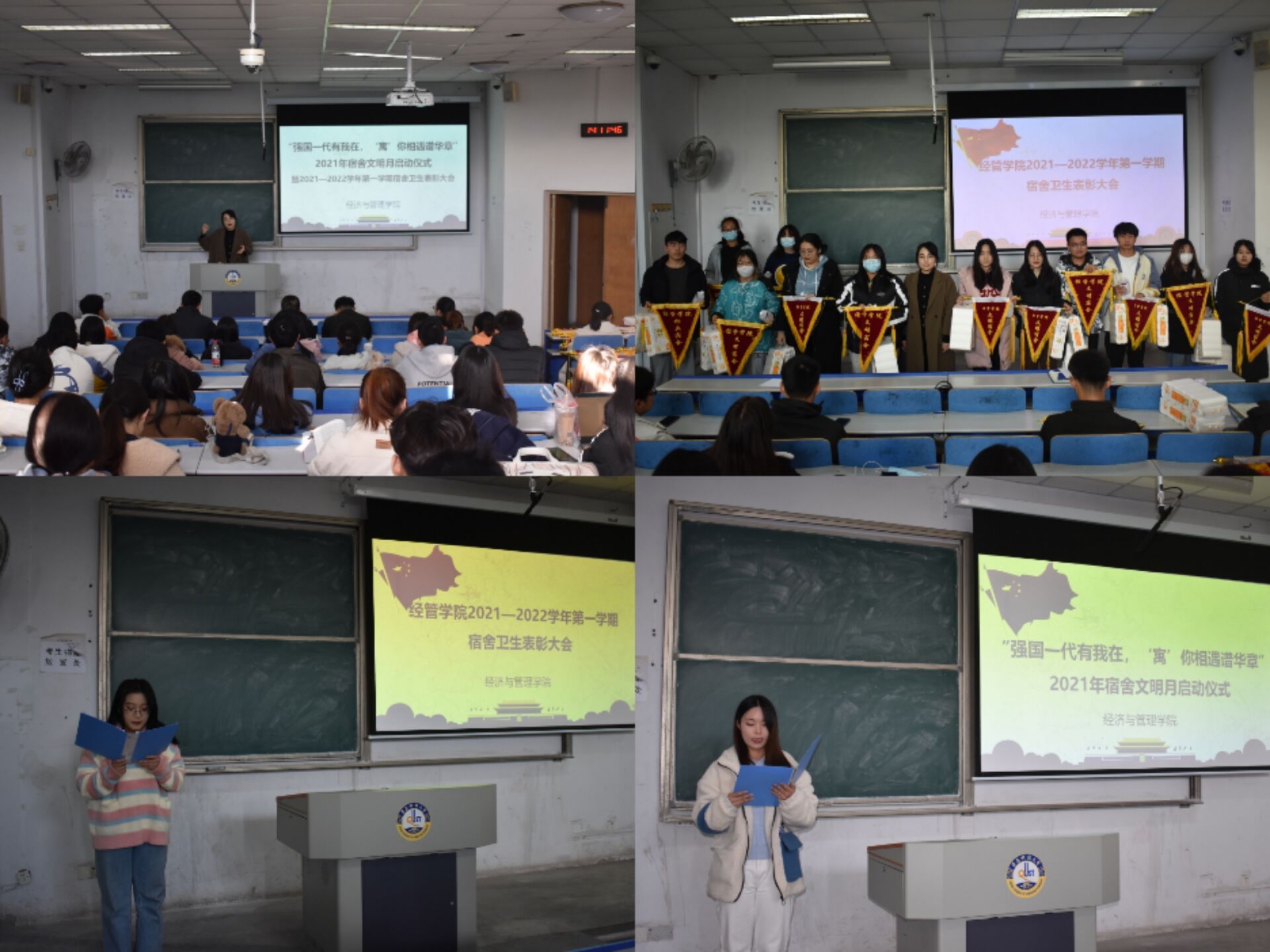学生的文明修养,提高宿舍文化的品位,营造健康、活泼、文明的生活氛围,丰富大学生寝室文化生活。随后,权益部副部长冉立宸介绍了“强国一代有我在,‘寓’你相遇谱华章”2021年宿舍文化月活动的具体内容,阐明了此次活动的目的及各项活动的要求。最后,权益部副部长燕德晓宣读2021—2022学年第一学期优秀宿舍名单,并为优秀宿舍舍长颁发锦旗及奖品,至此,大会圆满落幕。