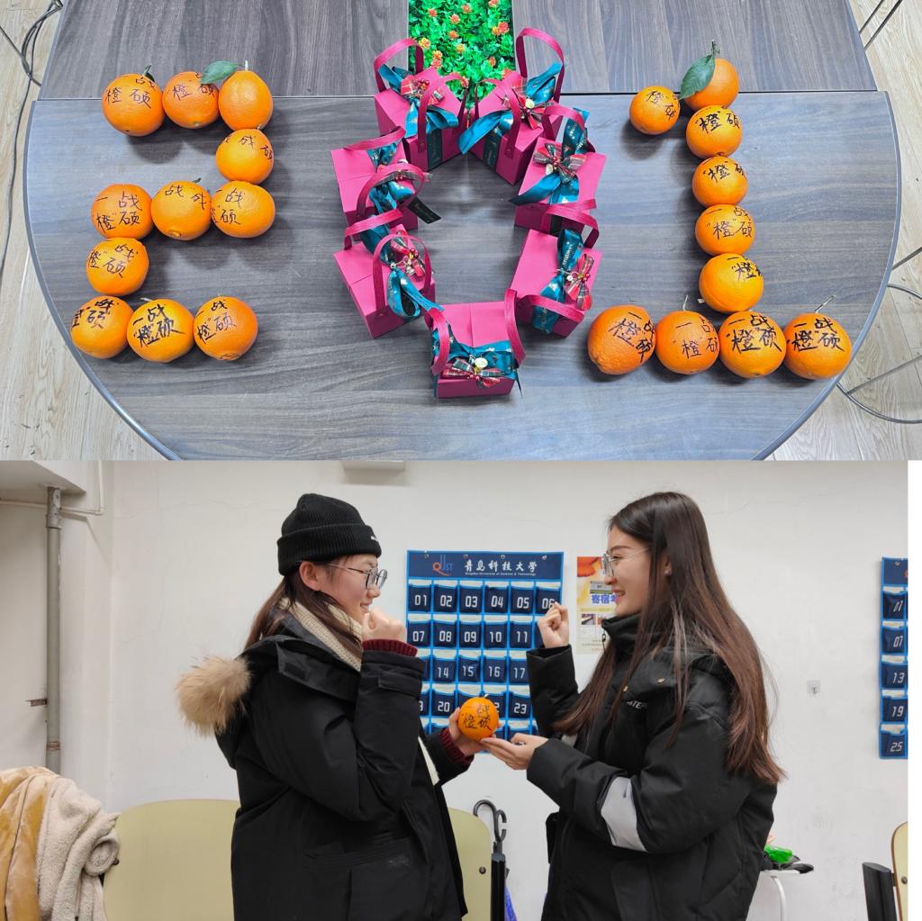 辅导员为考研的学生挑选了具有马到“橙”功、“苹”安顺利美好寓意的橙子和苹果,将祝福放入吉祥如意的红色纸袋中组成一个个凝结北京赛车PK10