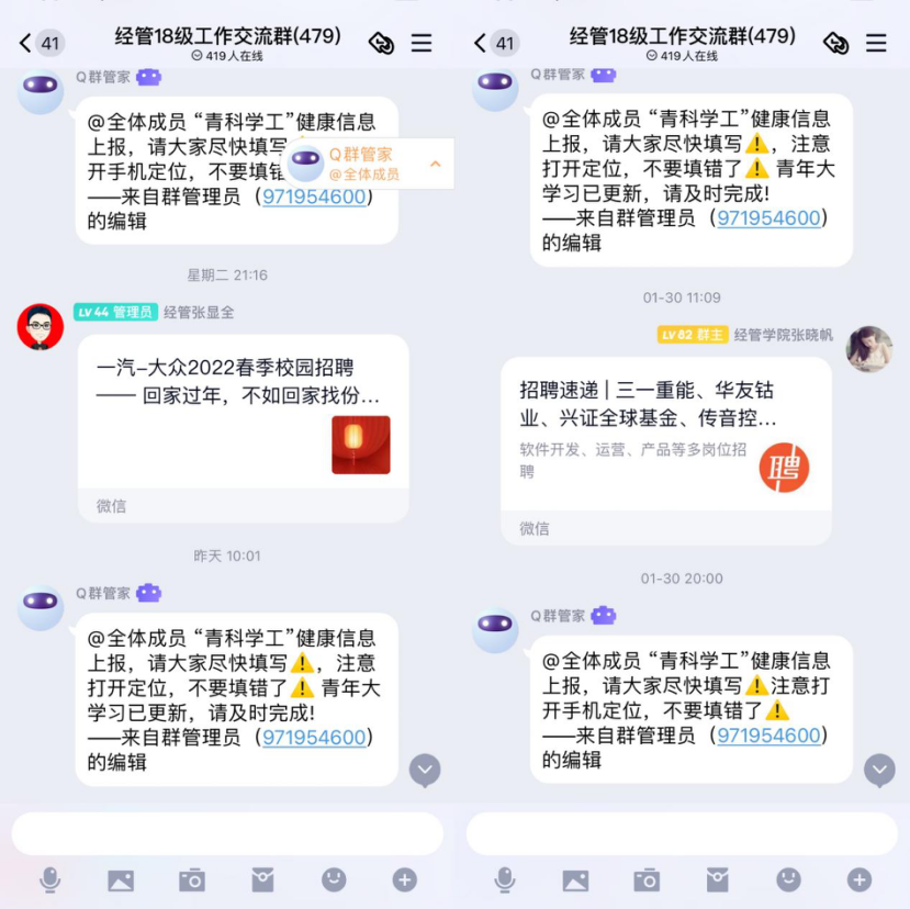 2018级学生作为毕业年级学生,就业工作是年级在寒假工作中的重中之重。利用寒假时间,辅导员通过调查问卷了解学生就业意向。全面细致地了解学生对就业的期望值,包括就业区域、薪酬标准、个人的基本能力素质等,对之前的一生一表情况进行更新。每天在QQ群和北京赛车PK10