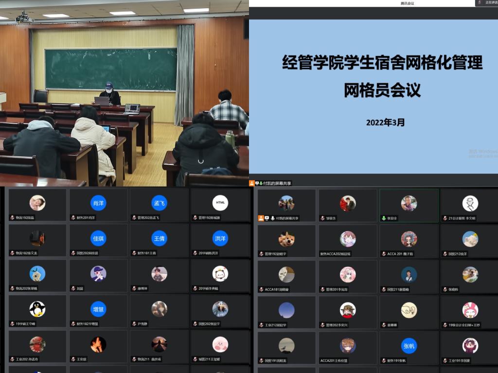 通过线上线下相结合的方式,于经管楼419会议室召开宿舍网格员线上会议,进一步落实疫情防控各项措施,学生宿舍所有楼长、楼层长及各年级专兼职辅导员参会。