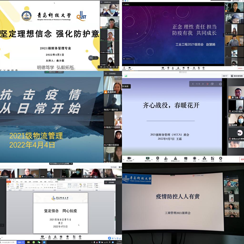防疫要求,做到不信谣、不传谣,坚持信息提报,做好核酸检测。各专业班级骨干、宿舍长要切实发挥组织员、引导员、宣传员的先锋作用。切实关注同学们宿舍舆情及上课情况,做到及时向辅导员老师反馈,及时提醒同学们需要注意的不自觉、不自律行为。二是关注学生心理,宣传防疫知识,教育引导同学们平和面对由疫情引发的封校管理举措。包括新型冠状病毒肺炎的“症状及识别”“主要传播途径”和“科学自我防护”等方面对全体学生进行相关知识普及。号召在学习之余走下网络,走向操场等场合,选择积极健康的文体活动,培养良好的兴趣爱好。采取三是聚焦学生主责主业,突破时空限制实现学习新模式。各专业班主任结合近期线上上课情况,引导学生合理安排学习生活,增强自律意识,做到无论是在教室,还是在宿舍都能严格要求自己。同时班主任老师们强调加强线上考勤,并就网课出现的问题进行了梳理。