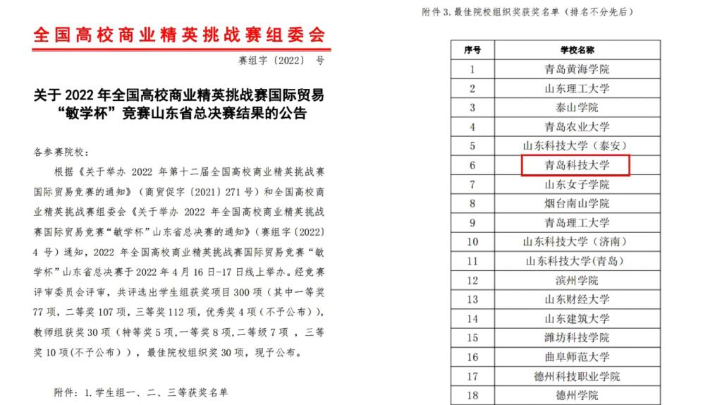近日,2022年全国高校商业精英挑战赛国际贸易竞赛山东省总决赛竞赛结果公布。北京赛车PK10