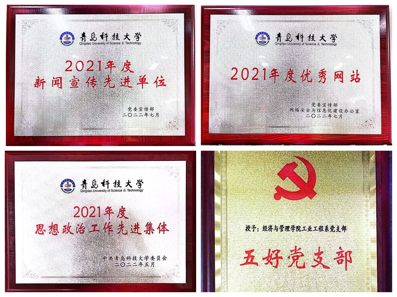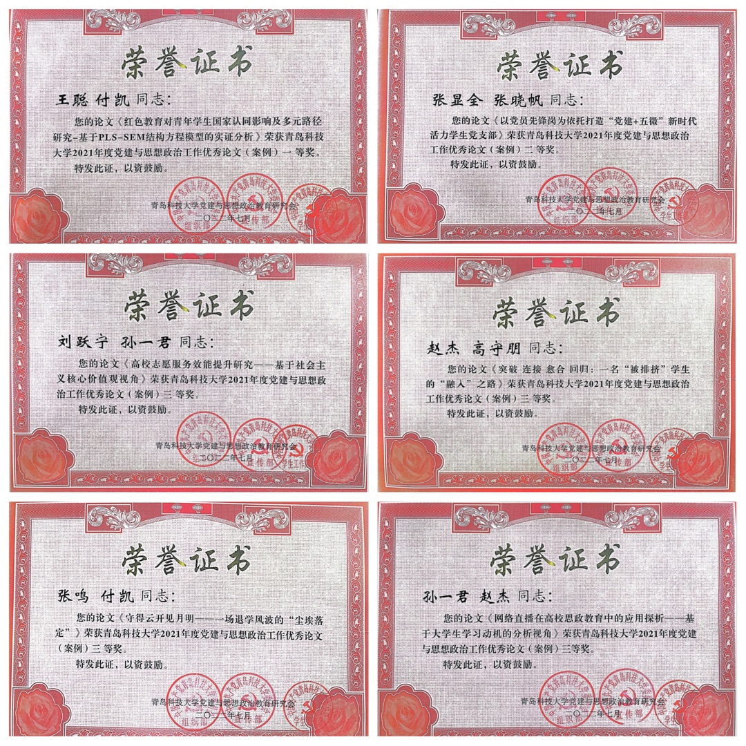 获2021年度新闻宣传先进单位、2021年度优秀网站,工业工程系党支部获思想政治工作先进集体、“五好”党支部,王聪获思想政治工作先进个人,索琪、王安琪(学生)获优秀共产党员。王聪、付凯撰写的论文《红色教育对青年学生国家认同影响及多元路径研究-基于PLS-SEM结构方程模型的实证分析》获优秀论文(案例)一等奖,张显全、张晓帆撰写的案例《以党员先锋岗为依托打造“党建+五微”新时代活力学生党支部》获二等奖,刘跃宁、孙一君撰写的论文《高校志愿服务效能提升研究——基于社会主义核心价值观视角》、赵杰、高守朋撰写的案例《突破 连接 愈合 回归:一名“被排挤”学生的“融入”之路》、张鸣、付凯撰写的案例《守得云开见月明——一场退学风波的“尘埃落定”》、孙一君、赵杰撰写的论文《网络直播在高校思政教育中的应用探析——基于大学生学习动机的分析视角》获三等奖。北京赛车PK10