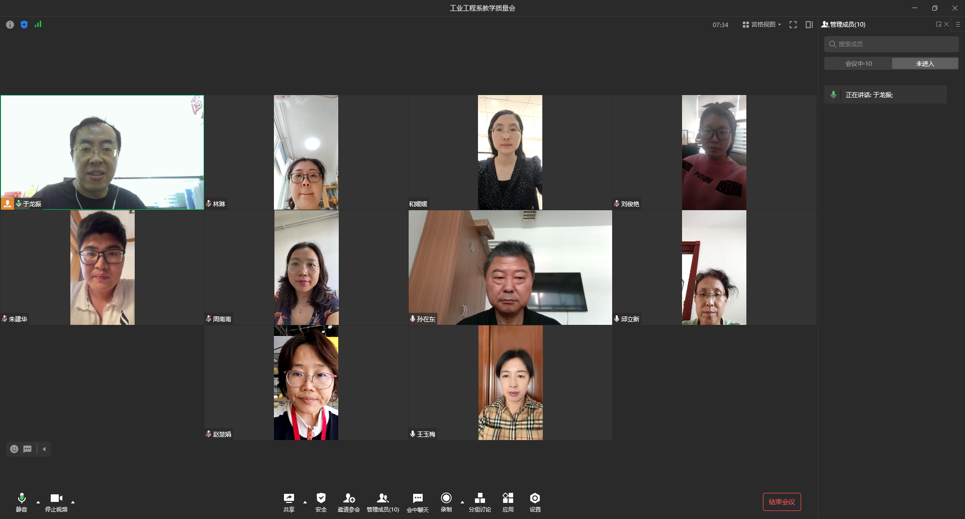 工业工程系党支部书记周南南对全系教师教学工作给予充分肯定,鼓励大家多沟通交流经验。系资深教师孙在东从疫情下的课堂细节管理入手,给大家提出宝贵建议。
