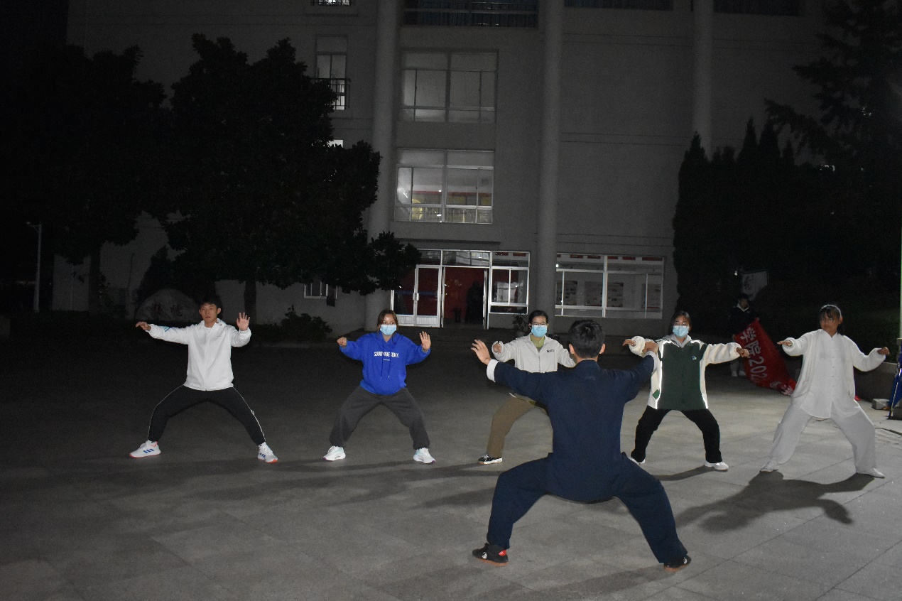15日当晚,协会成员们学习了陈氏太极拳精要十八式,师兄为大家一一讲解动作要领、亲身为成员摆正动作,练习时虚领顶劲、立身中正、松肩坠肘、含胸塌腰、心气下降、呼吸自然、虚实分明、上下相随、刚柔并济、快慢相间。在师兄的讲解之下,协会成员对陈式太极拳掌握逐渐熟练,动作愈发标准。在练习间,协会成员之间关系愈加融洽,共同学习、共同进步。在一步步的了解与操练下,协会成员感受到了陈氏太极拳的魅力。