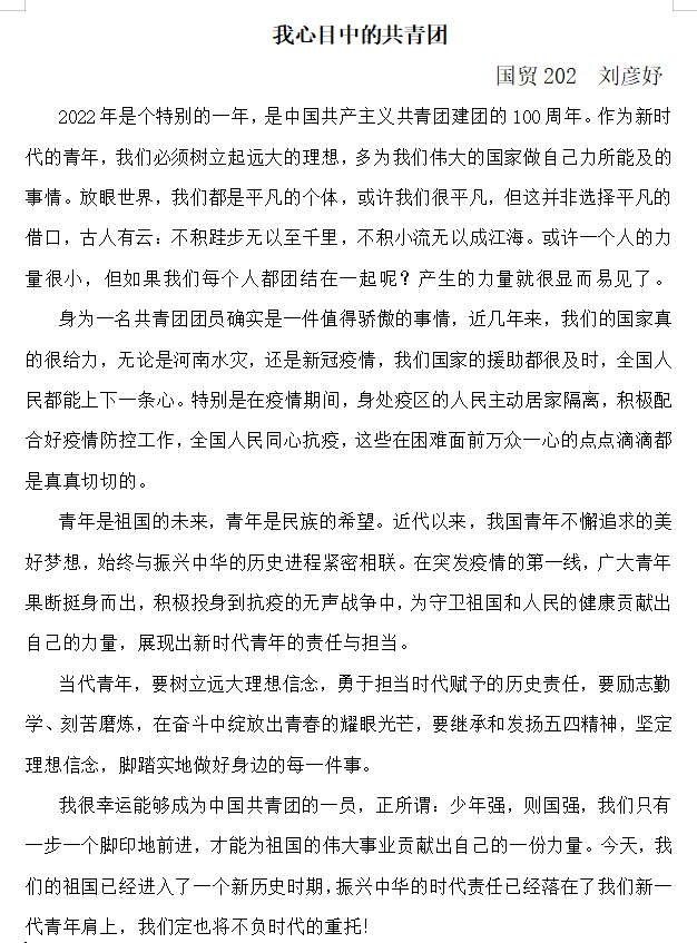 开展“我心目中的共青团”主题征文比赛