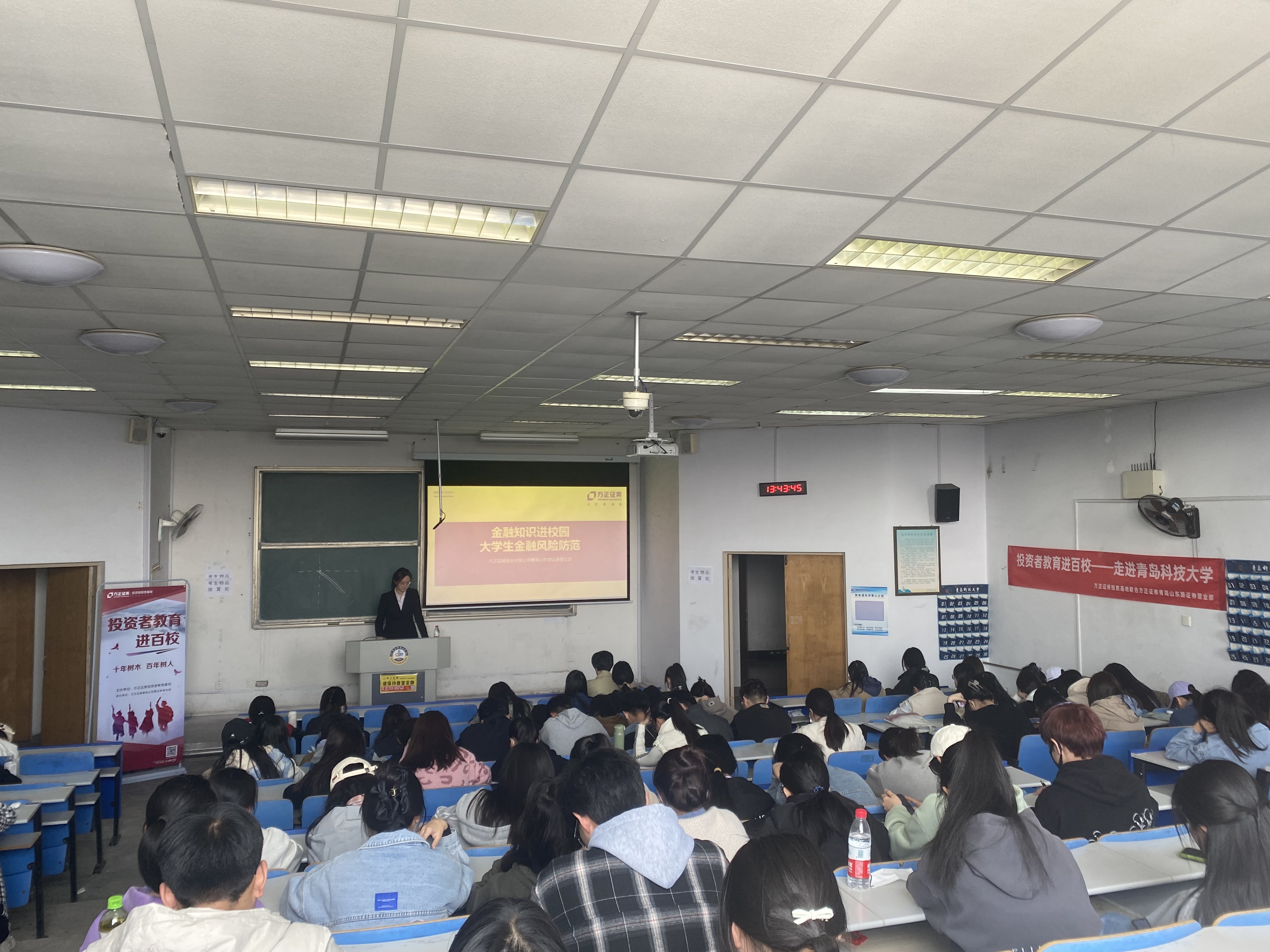 联合方正证券股份有限公司青岛山东路证券营业部在弘毅楼E301举行金融知识进校园暨防范金融风险专题讲座。