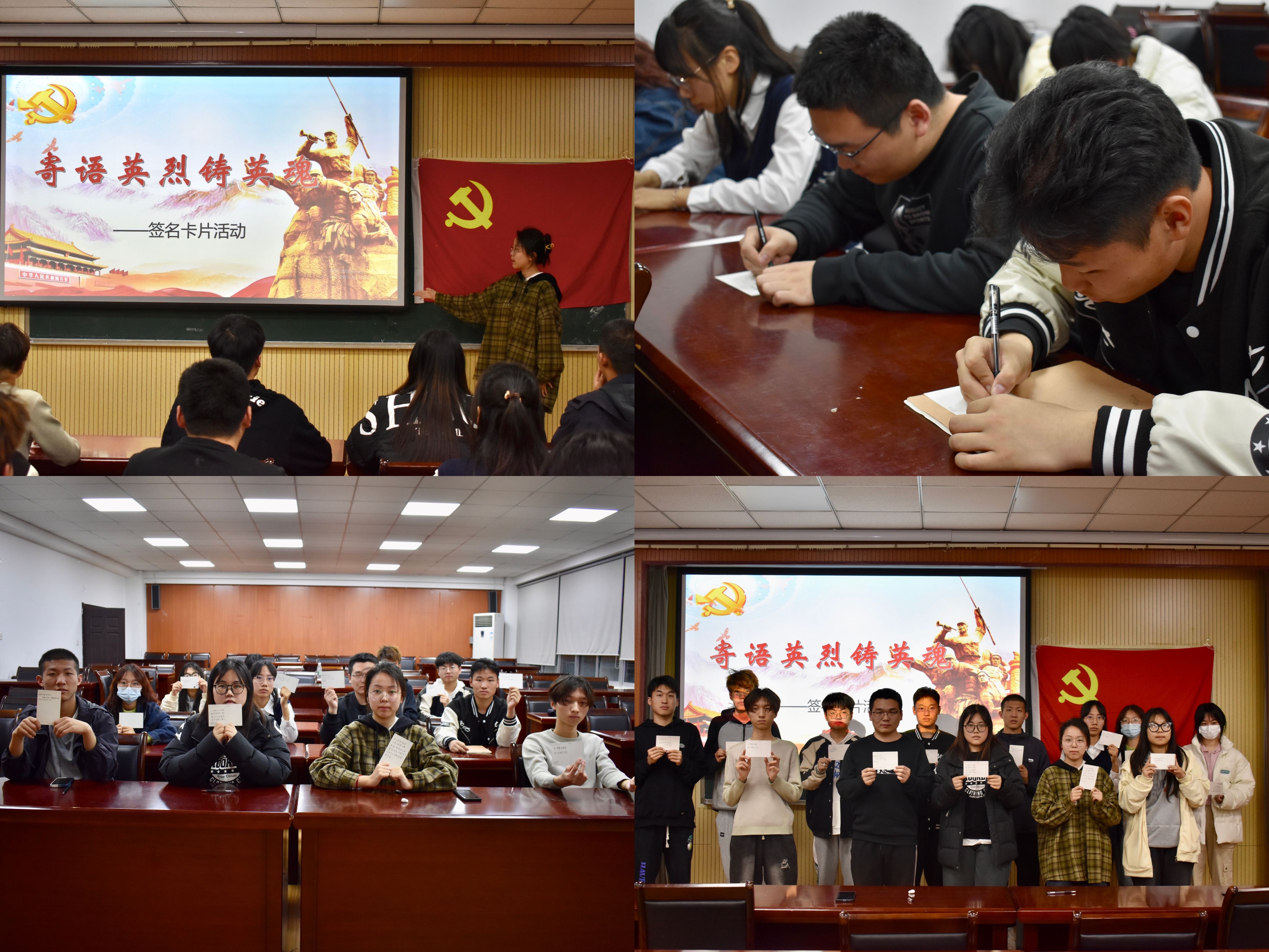 组织开展“重温不朽荣光 回望英雄征程”主题宣讲学习会,通过学党史、读事迹、品精神,深入感悟先烈革命事迹。活动过程中,在座全体同学重温入党誓词与入团誓词,在鲜红的旗帜下庄严宣誓,洪亮铿锵的声音与豪迈有力的誓言饱含了大家致敬先烈、学思党史、传承英雄精神的坚定决心。大家纷纷表示,全体同学定将牢记先辈嘱托,继承英烈遗志,赓续红色血脉,把这份爱国热情转化为努力奋斗踏实学习的自觉,继续把无数先烈开创的伟大事业推向前进。