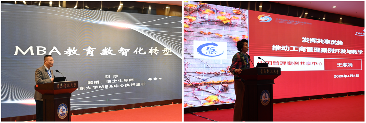 院长助理刘冰教授应邀作了题为《MBA教育的数智化转型》的报告。中国管理案例共享中心王淑娟副主任作了题为《发挥共享优势,推动工商管理案开发与教学》的报告。