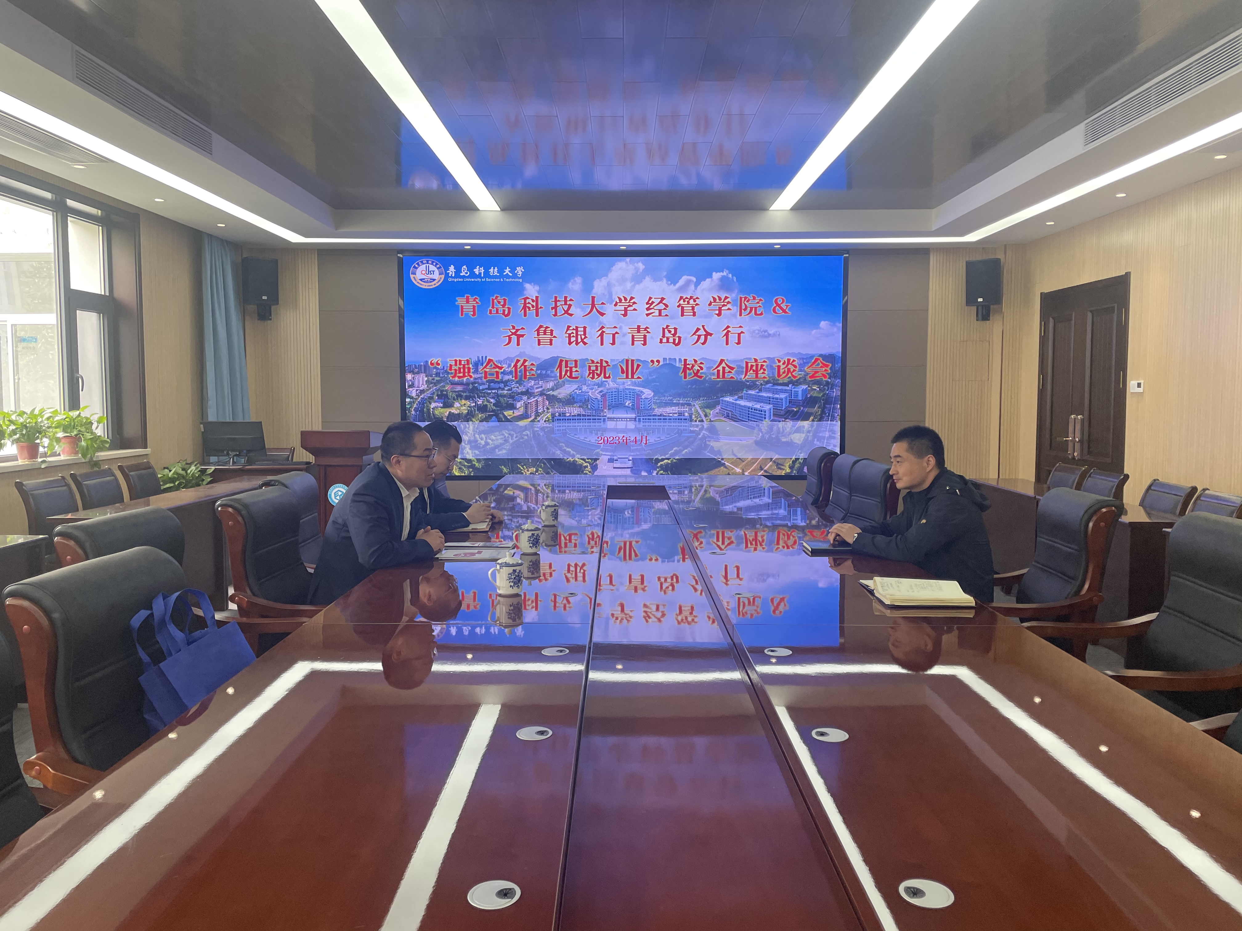 与齐鲁银行青岛分行于经管楼313会议室举办“强合作 促就业”校企座谈会,齐鲁银行青岛分行办公室主任兼计财部总经理刘玉浩一行3人来校交流,探讨人才招聘、实习实践等相关事宜。北京赛车PK10