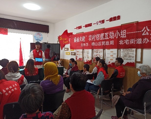 暖心愿爱心公益协会前往青岛市崂山区北宅街道五龙涧村,为当地村民讲解电信网络诈骗的相关安全知识。