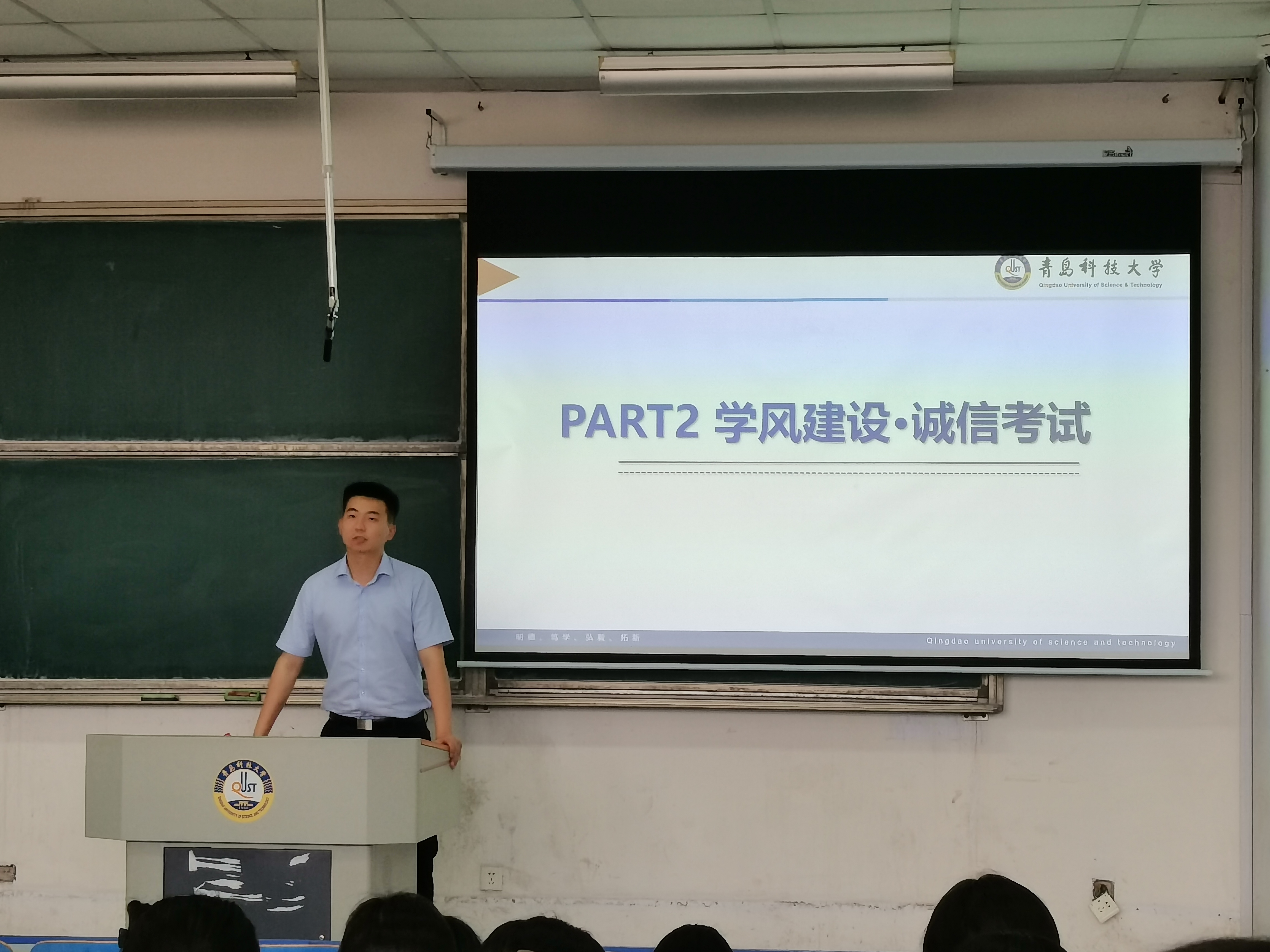 考风考纪的要求,形成良好的诚信之风,端正同学考试态度,袁绍正老师带领全体学生学习关于考试纪律的校规校纪和法律法规,并向同学们提出三点建议:一是要利用好期末复习时间,做好考前复习和准备,积极备考,以良好的心态参加期末考试;二是端正考试的态度,杜绝考试作弊的现象,形成良好的诚信之风;三是在诚信考试的大前提下,树立优良的学风、班风、院风、校风。