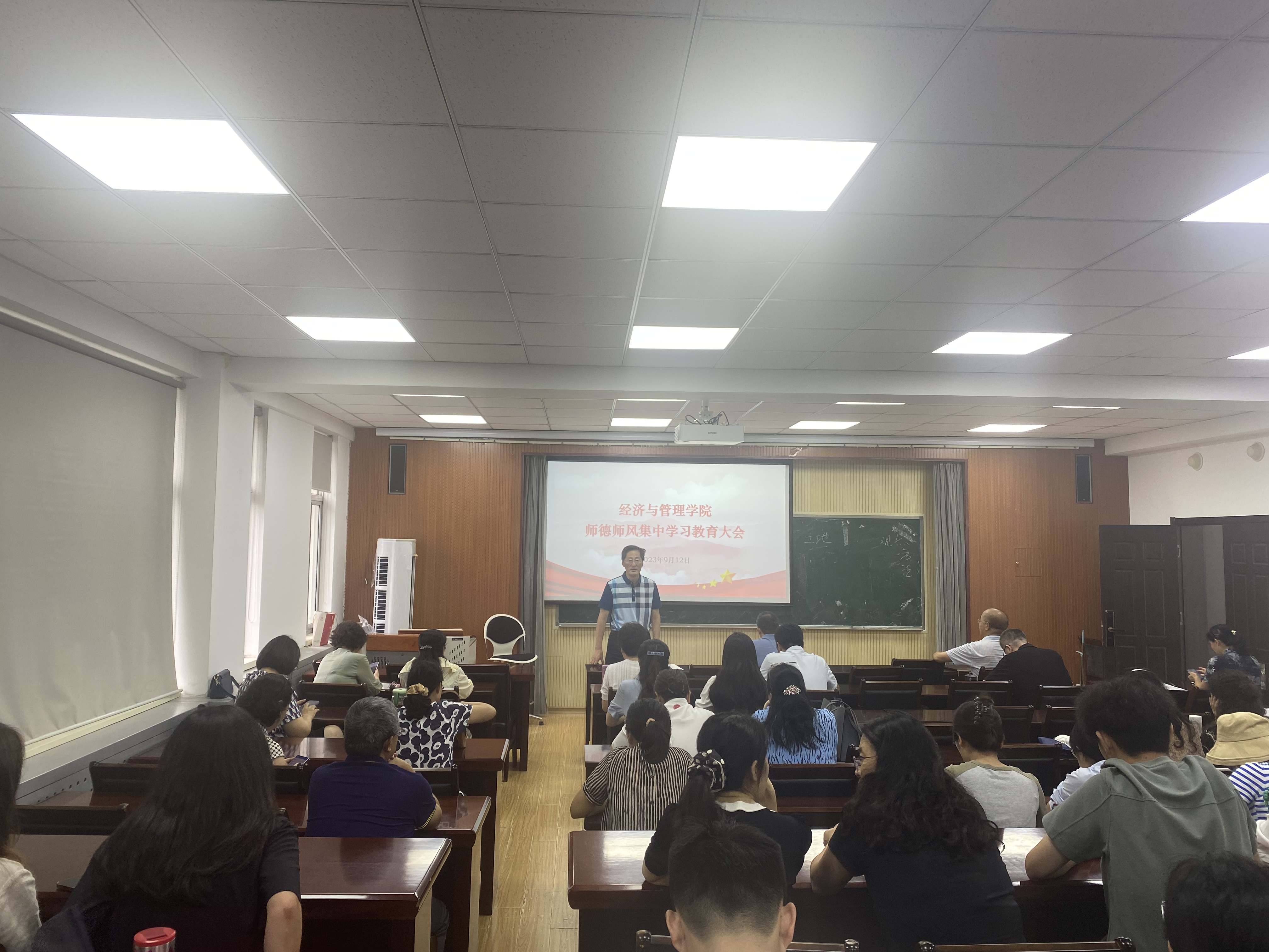 于经管楼410会议室召开师德师风集中学会习教育大会暨全体教职工理论学习会,会议由北京赛车PK10