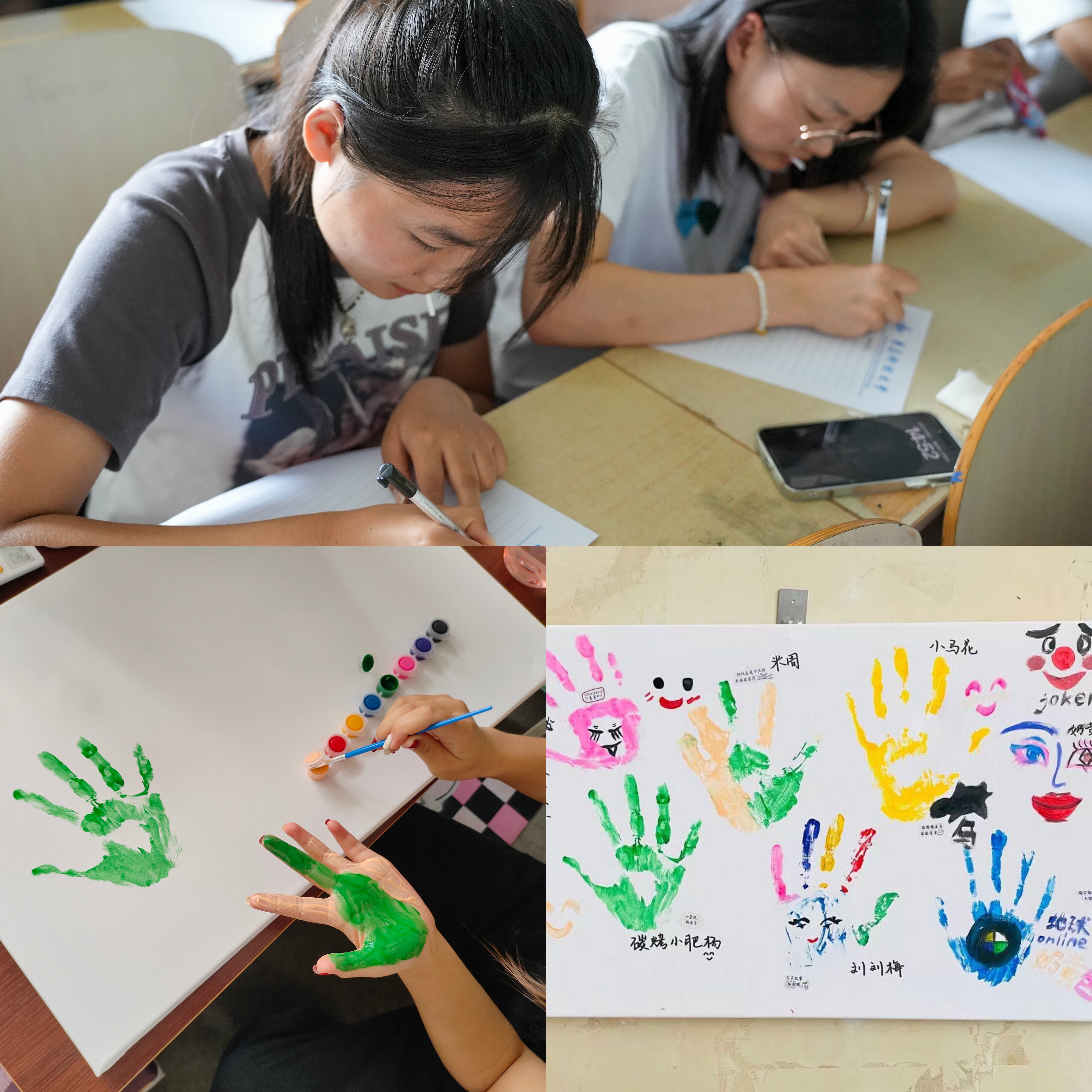 “彩色心情”手掌印面活动中,同学们通过在画板上印下自己喜欢的颜色,留下自己的彩色心情,帮助同学们沉浸在色彩世界的同时,不断地探索自己的内心世界。以手掌为笔,以色彩为语,书写自己内心的想法,去宣泄,表达和释放负面情绪,以此来减缓压力。“秋风信差”活动中,大一新生以书面形式写下自己的心路历程,由北京赛车PK10