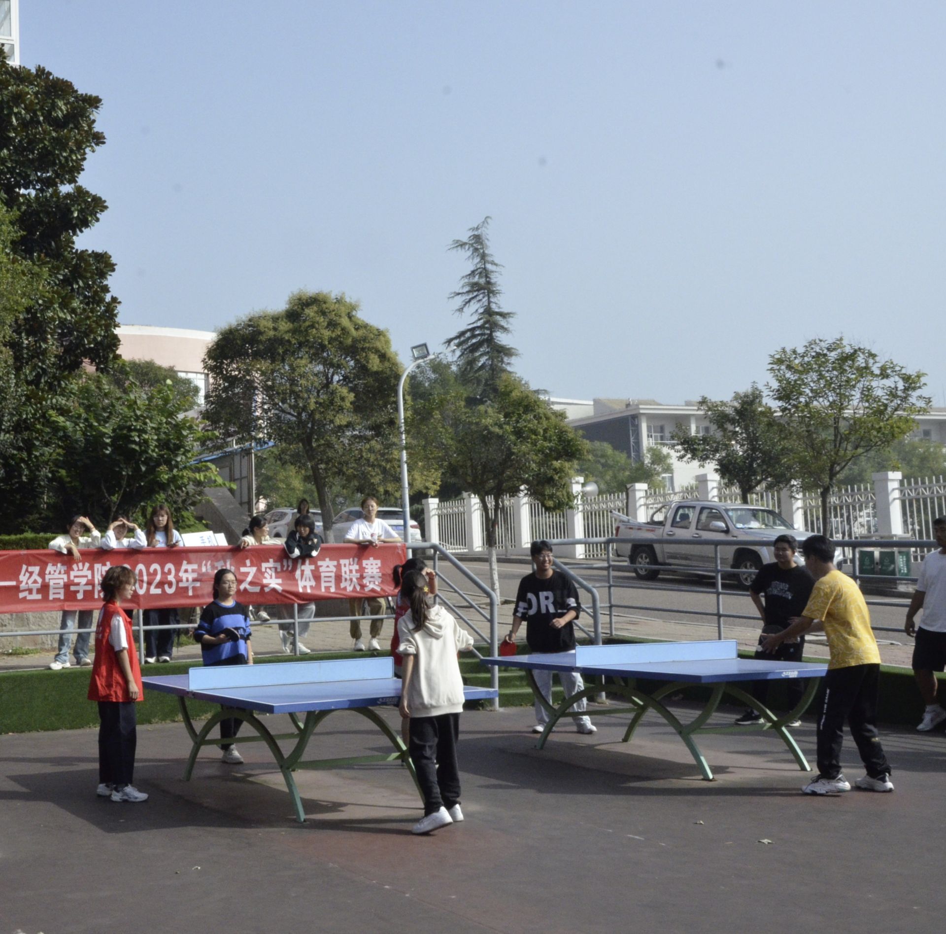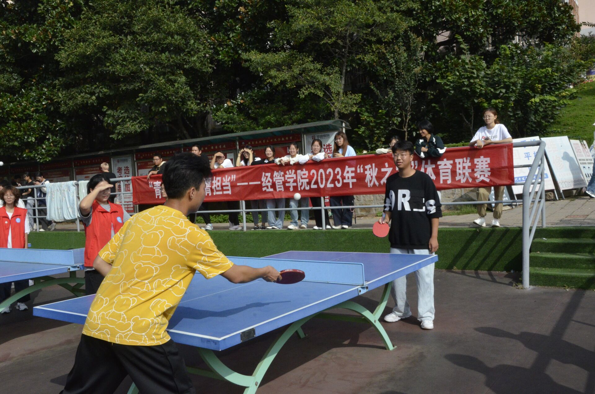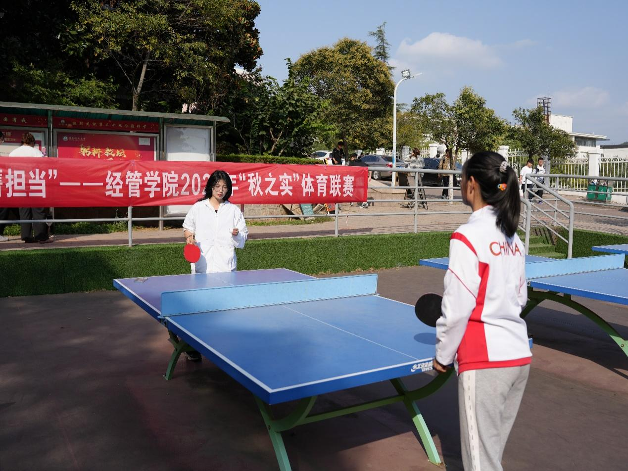 于南苑乒乓球场举行2023年“秋之实”乒乓球联赛,乒乓球协会成员、2021级至2023级学生参加比赛。