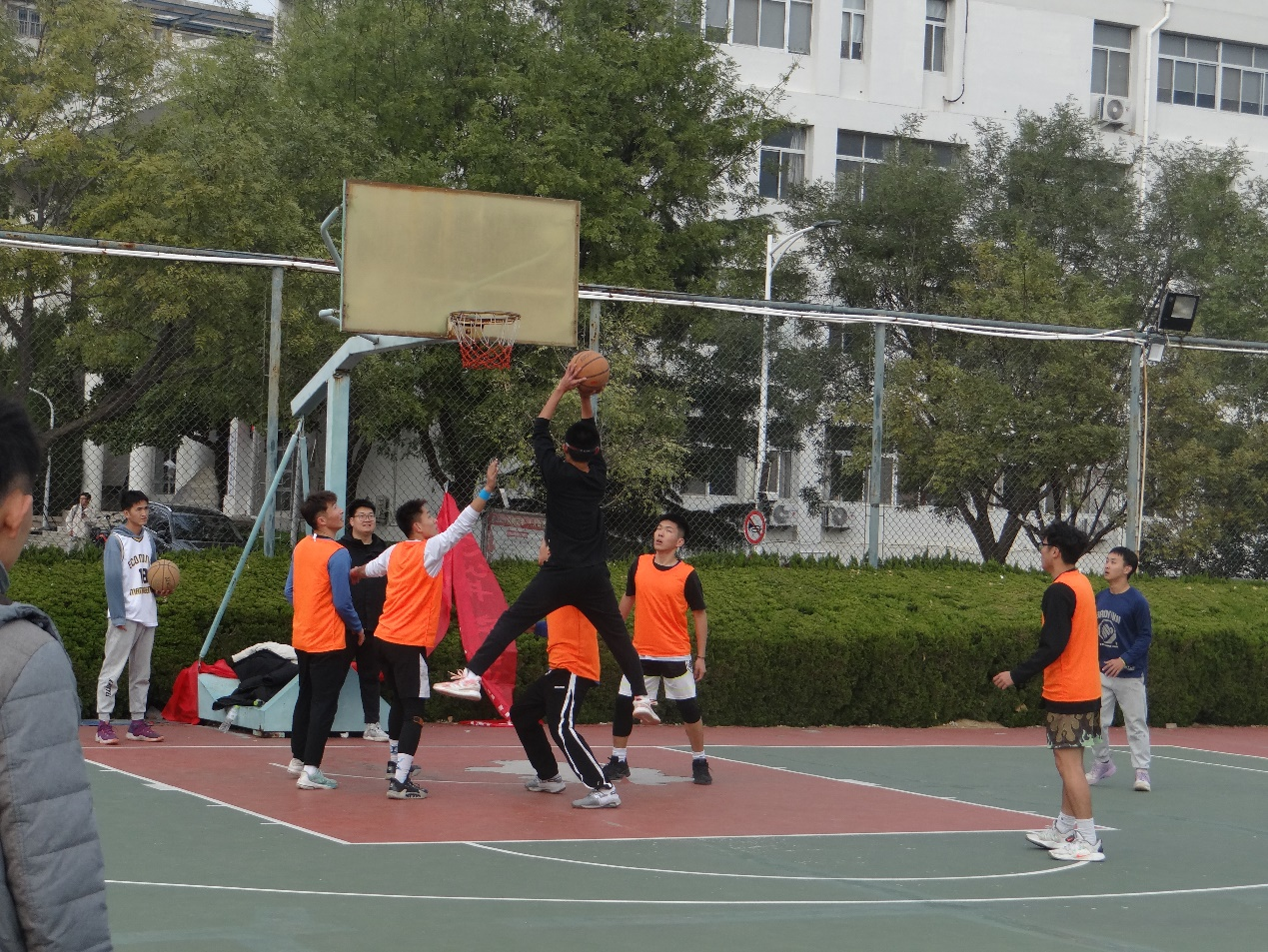 在球场上同学们挥洒汗水,青春的光芒因此闪耀。各专业运动员,裁判,工作人员及现场观众表现突出,工作人员积极做好后勤保障工作,裁判员公正无私,所有运动员真正发挥了友谊第一,比赛第二的精神,赛出了风格,赛出了水平。比赛如火如荼的进行着,大一萌新对战大四准毕业生,打出了32:41的优秀成绩,大二年级对打大三年级以35:43的分数依然胶着,继而在决赛中,大三大四年级一争高下,打出了52:55的好成绩,大四年级更胜一筹获得院级联赛冠军。
