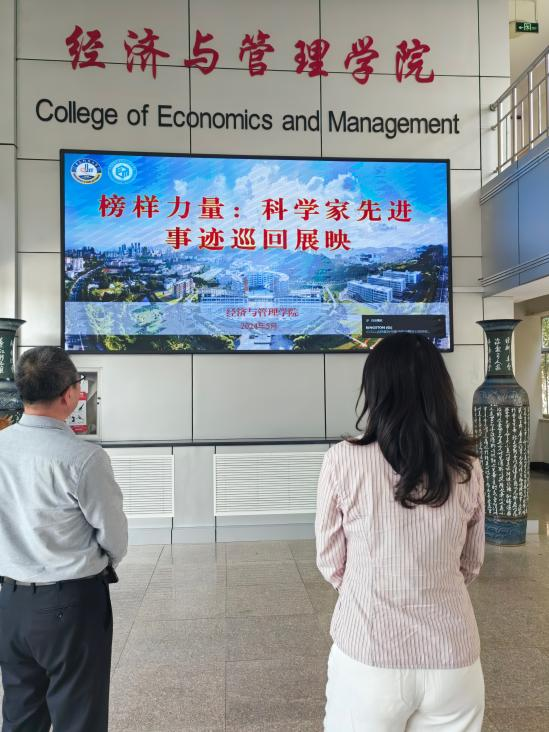 通过大屏幕滚动播放的方式面向全院师生开展了一系列科学家先进事迹展播活动,弘扬科学精神,传递榜样力量。展播活动精选了多位在科研领域作出杰出贡献的科学家的事迹,他们中有的是国内外享有盛誉的学术大师,有的是在特定领域取得重大突破的年轻科学家。通过展示他们的科研历程、学术成就和人格魅力,旨在让师生们深入了解科学家们的奋斗精神和科学精神,感受他们对科学事业的执着追求和无私奉献。师生们驻足观看后表示,这些科学家的事迹不仅让他们感受到科学的魅力和力量,更让他们明确了科研工作者应有的责任与担当。