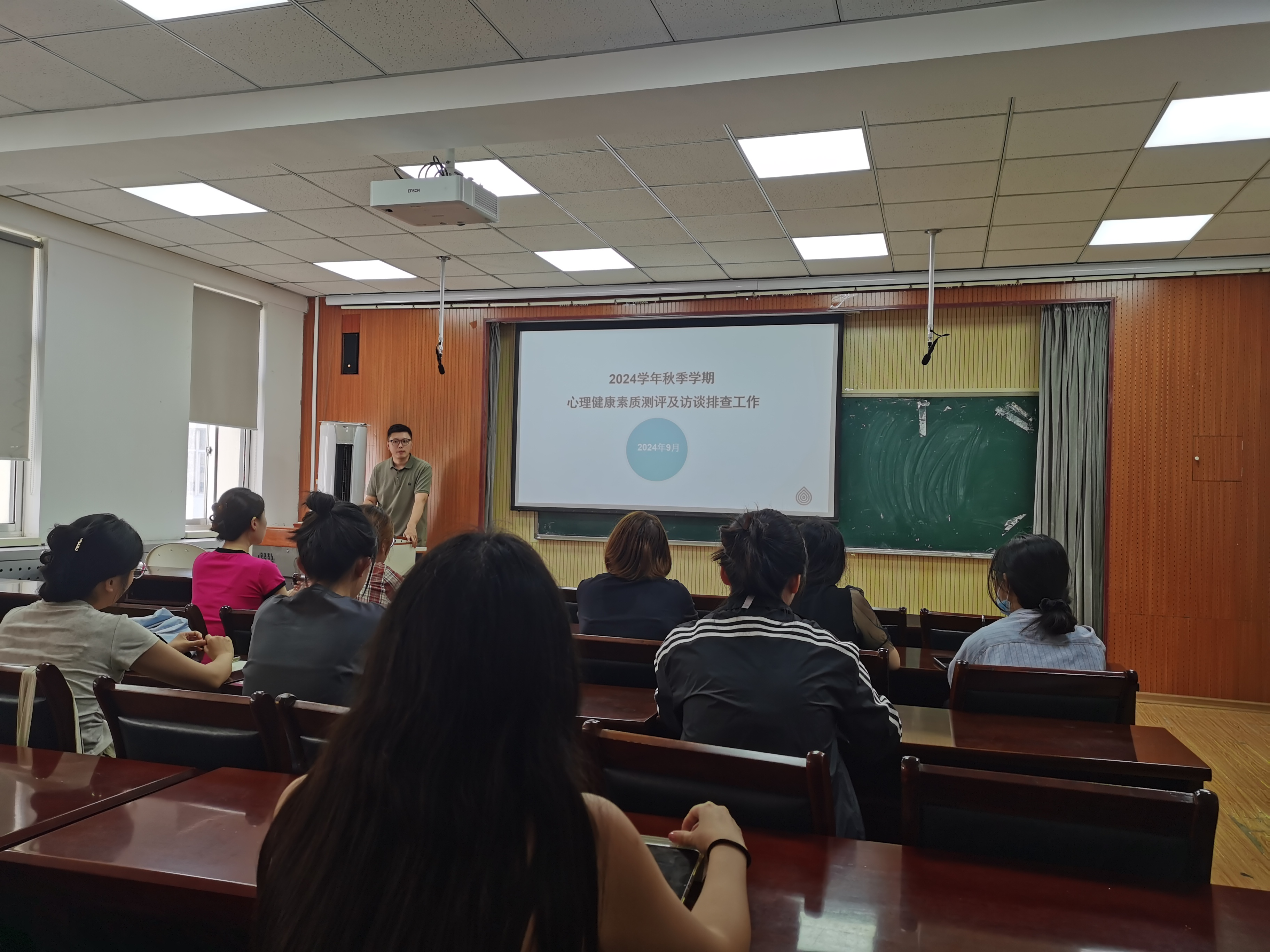 培训伊始,付继航向大家强调研究生心理委员工作的重要性,明确了心理委员的职责和工作原则,随后从四个方面对心理委员进行了悉心指导:一是了解同学返校心理状态,加强危机管理意识;二是加强日常交流和沟通,保持敏锐的洞察力,提供及时帮助和支持,及时干预和疏导,了解同学的需求和困惑。三是和其他班委合作,加强合作与联动,形成工作合力,有力开展心理活动;四是积极宣传,营造氛围,合理赋能阳光心理,以良好精神面貌投入新学期生活。会上还对新学期心理测评相关工作进行了部署。