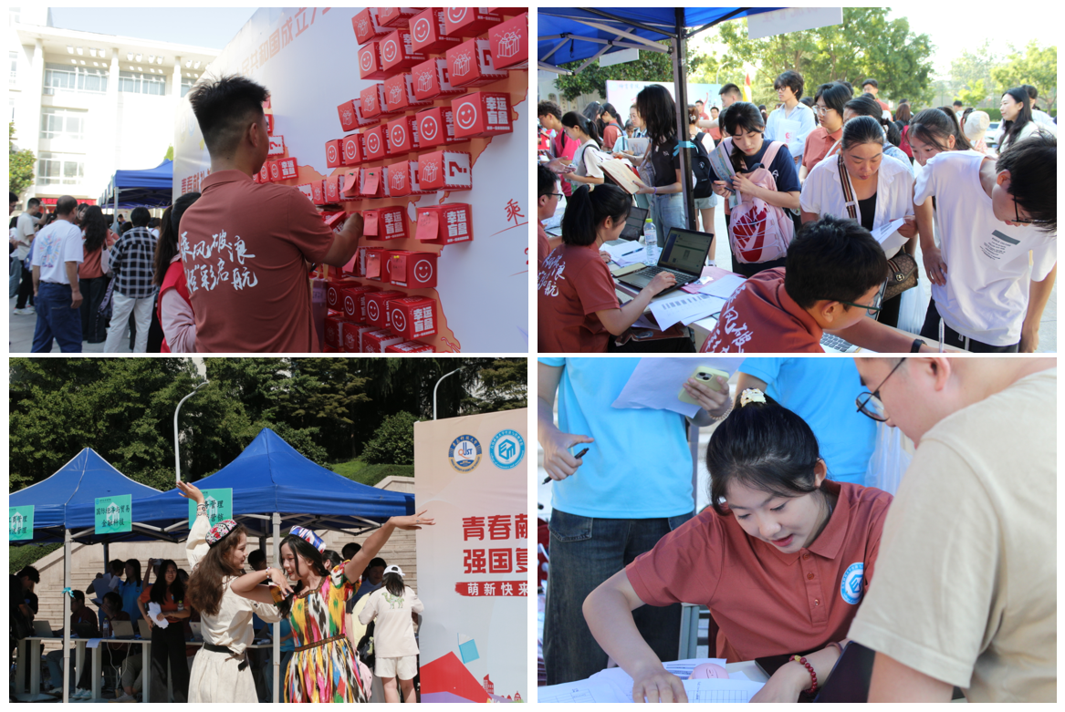 还特别设置党员服务先锋岗,开通绿色通道专区,为特殊学生提供帮助。制作中国地图盲盒展板,以“新”迎新,引导新生为祖国母亲75周岁华诞送上祝福;开展“爱党、爱国、爱校、爱院、爱自己”教育,组织少数民族新老生同学一同载歌载舞,共同铸牢中华民族共同体意识。
