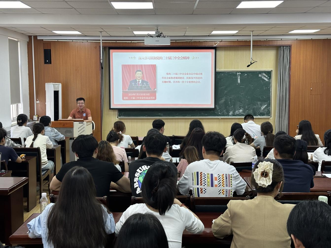 党课伊始,吕承超首先高屋建瓴地概述了党的二十届三中全会的总体情况,包括会议的背景及重大历史意义。随后重点围绕习近平总书记在党的二十届三中全会上发表的重要讲话精神进行了深入阐述。他巧妙地融合经济学专业知识,从深刻认识党的二十届二中全会以来党和国家事业取得的重大成就、深刻认识全会主题、深刻认识进一步全面深化改革的重大原则、深刻认识党中央对下半年工作的重要部署展开讲述。他指出,总书记的讲话高瞻远瞩、内涵丰富,为新时代全面深化改革指明了方向、提供了遵循。在全面准确理解《决定》所提出的进一步全面深化改革重大举措部分,他详细解读了《决定》中的关键内容。最后深刻阐述了统筹推进教育科技人才体制机制一体化改革的部署要求。他强调,教育、科技、人才是全面建设社会主义现代化国家的基础性、战略性支撑,必须加快构建高水平人才培养体系,推动产学研深度融合,为经济社会发展提供强有力的人才保障和智力支持。