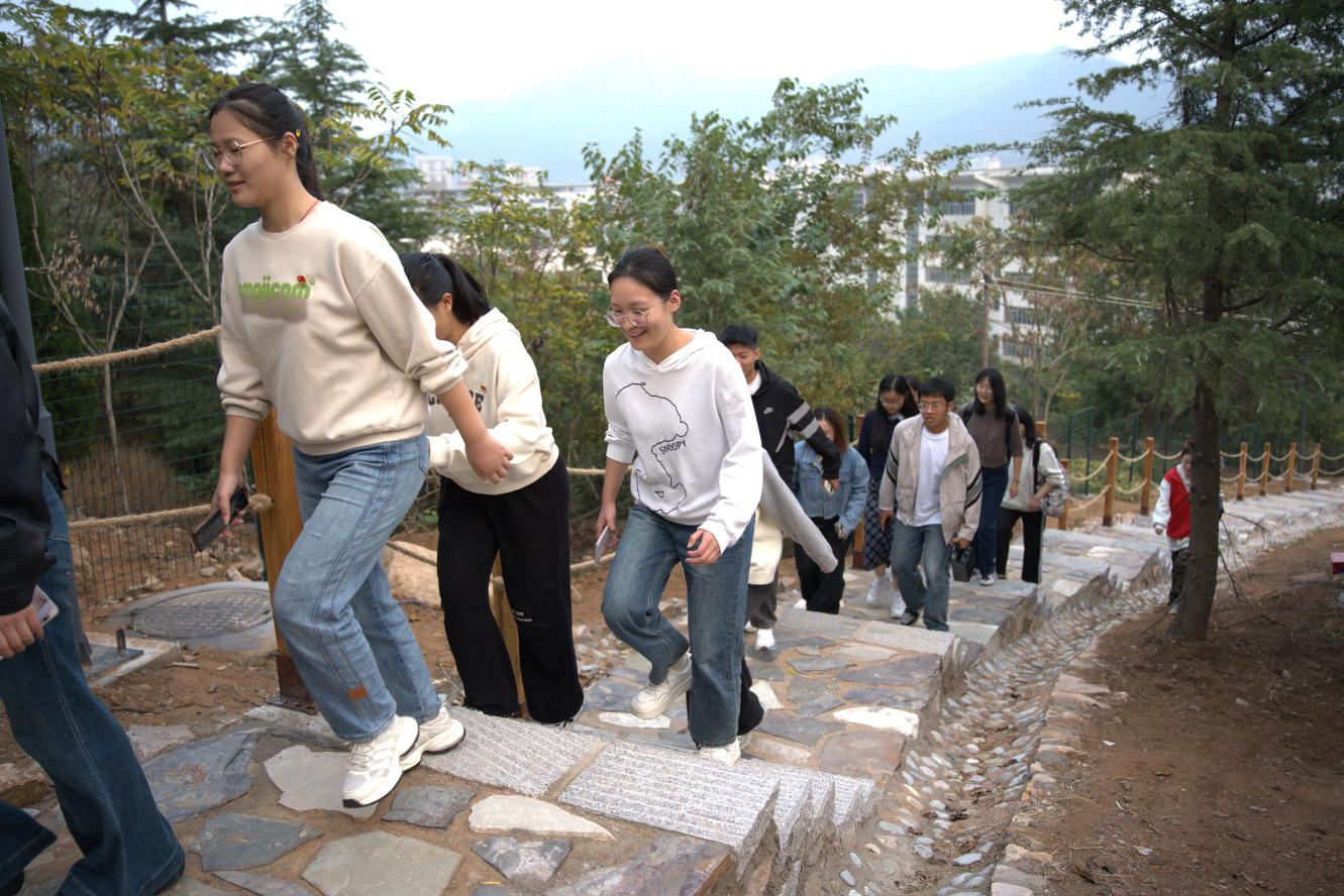 活动伊始,学生党员们一齐出发,沿登山步道一路前行,入秋转凉的天气丝毫没有影响同学们的热情,大家精神饱满、朝气蓬勃,一路前进,对于党员同学们来说,登山健步行不仅锻炼了身体,提高身体素质,还增进了彼此之间的交流与友谊。