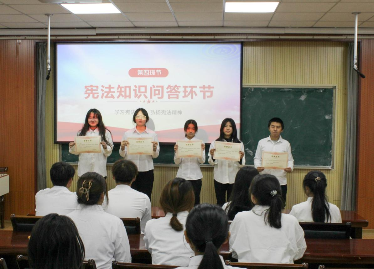 以各班级为单位,组织开展“宪法知识竞答”比赛,以赛领学,以赛促学,通过激烈的比赛氛围,加深学生对习近平法治思想、宪法精神的理解和记忆,推动宪法知识入脑入心。同时,通过比赛选拔出优秀选手,树立榜样,带动全院学生学习宪法的积极性。