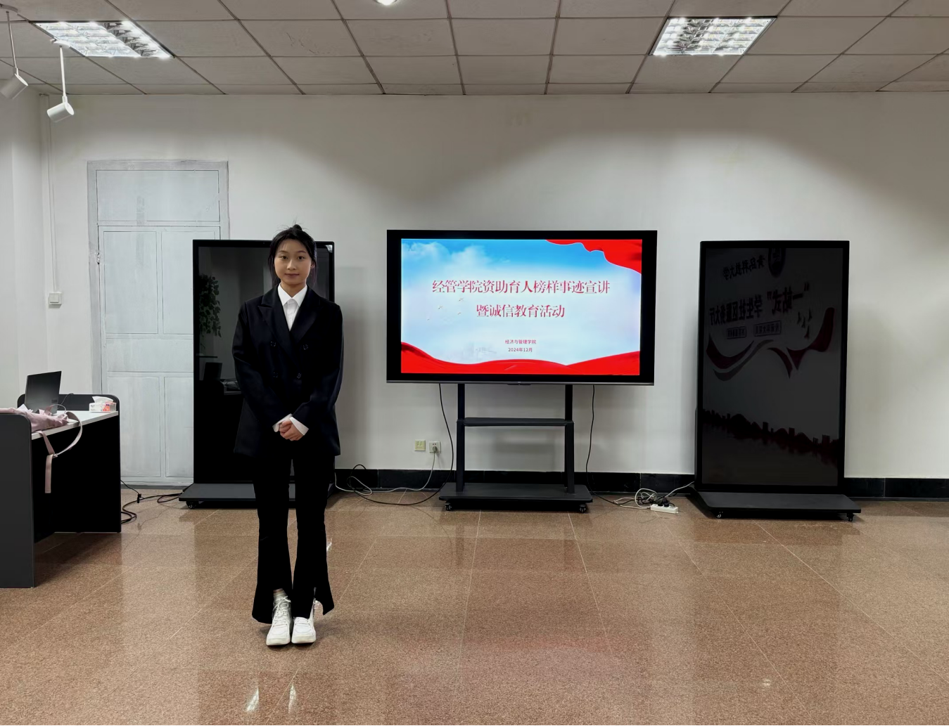 本次事迹宣讲会邀请了2022级资助育人优秀学生代表李萌为低年级同学做分享。宣讲会上,李萌同学聚焦“学习”“竞赛”“科创”“资助”等主题,深入剖析自身大学学习、学生干部工作、社会实践等方面的心路历程,鼓励同学们抓住机会,早做规划,在校期间积极参与学科竞赛,通过实践全面提升自身能力素质,练就过硬本领。同时鼓励经管学子在学习上锐意进取,在科研上勇于探索,在志愿服务上无私奉献,以坚毅品格、顽强斗志、奉献精神谱写自强人生。会后,李萌还认真为同学们答疑解惑,并提醒同学们临近期末考试,一定要考前认真备考,考中平稳心态,发挥出自己的真实状态,杜绝任何违反考试纪律、作弊的行为,以诚信考试为本学期的学习画上圆满的句号,充分发挥朋辈励志榜样作用,营造知恩感恩氛围,进一步提升资助育人成效。
