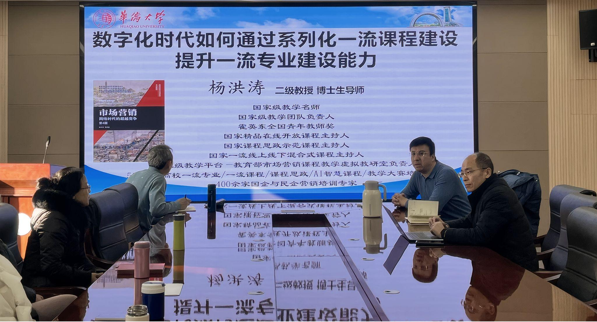 作为教育部市场营销课程教学虚拟教研室成员单位荣幸地邀请到了国家级教学名师、国家级教学团队负责人以及国家一流专业负责人——华侨大学教授杨洪涛。杨教授就国家课程建设和教学改革相关政策、智慧课程实践等议题进行了深入的分享与探讨。
