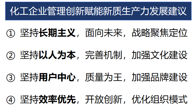 本次报告里的管理创新实践生动诠释了管理创新的多维内涵,提出了化工企业管理创新赋能新质生产力发展的建议,为全球产业变革贡献中国智慧。
