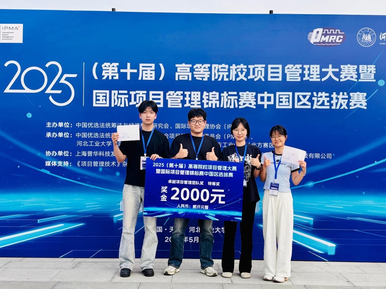 派出2支本科生队伍,共8名同学,由董华和黄天赐两位老师指导带队。最终2支团队全部获团队特等奖;个人一等奖7项,二等奖1项,多名同学同时获得IPMP的D级证书;董华和黄天赐老师,均获得优秀指导老师称号。