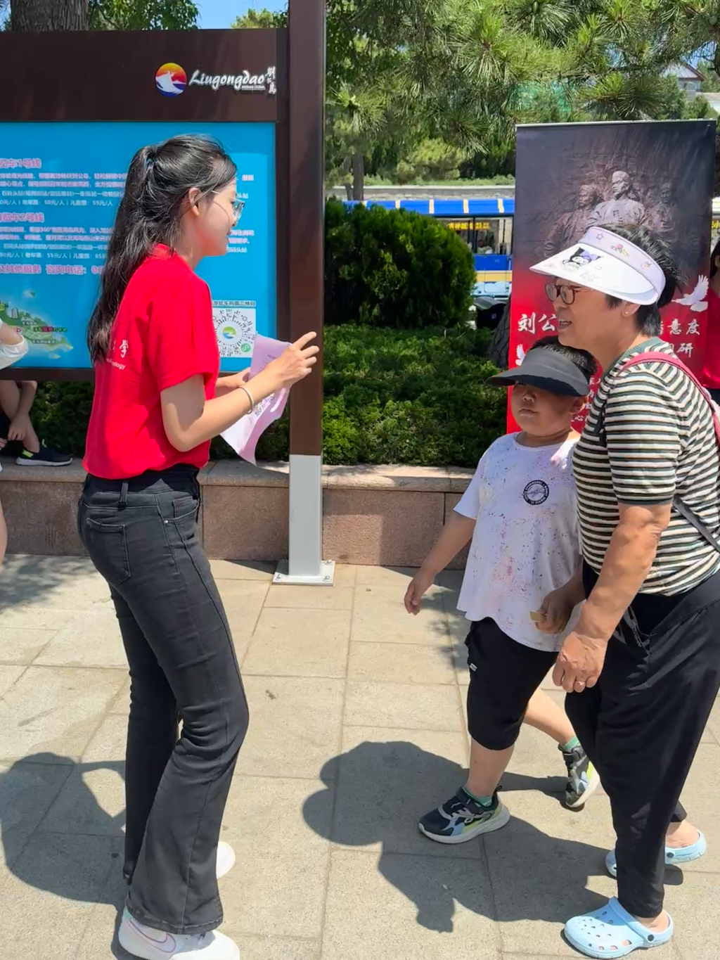为进一步丰富实践成果,实践团成员结合自身专业特长,立足刘公岛“红色研学+文创消费”主题主线,围绕“优化红旅体验、深化研学产品、智慧导览升级、非遗活化路径”等调研内容,在景区流量点放置可视化的扫码易拉宝和意见收集箱,同时面向游客、景区工作人员、当地居民等发放调研问卷,探索红色资源赋能文旅消费的实践路径。