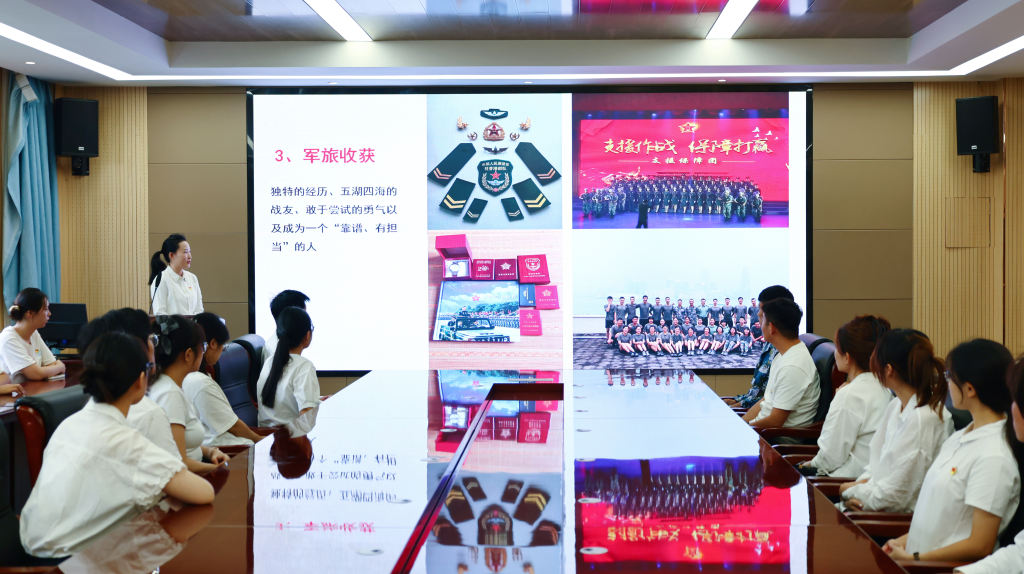 党委特别邀请退役士兵党员代表开展“戎光淬志,青春报国”主题分享会。曾服役于中国人民解放军驻香港部队的2024级硕士研究生潘思梦,以“从校园到香江,从迷彩到青春”为题,结合自身经历讲述了军营中淬炼意志、磨砺品格的故事。她提到:“当国歌在维多利亚港湾响起,当五星红旗与紫荆花旗一同升起,那一刻的自豪感让我深刻体会到保家卫国的千钧重担。”本科生2023级退役士兵艾克拜尔·艾海提分享了自己戍守边疆的故事,“守护界碑宣示主权,是军人的使命和荣光!”退伍返校,他将军人的自律、坚韧带进校园,继续保持着军人的优良作风,续写军人荣光。