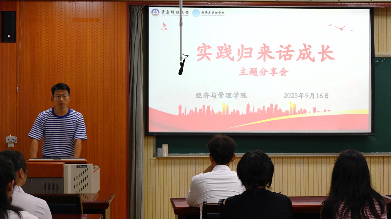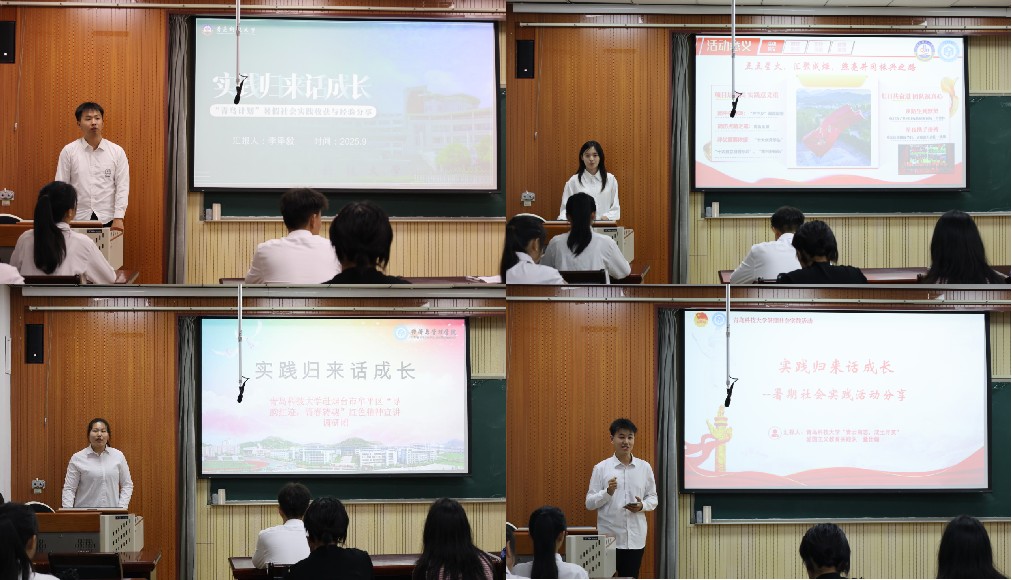 在505会议室举办“实践归来话成长”主题分享会。辅导员孙建树、吕欣哲,各年级暑期社会实践成员、25级新生代表参加本次活动。