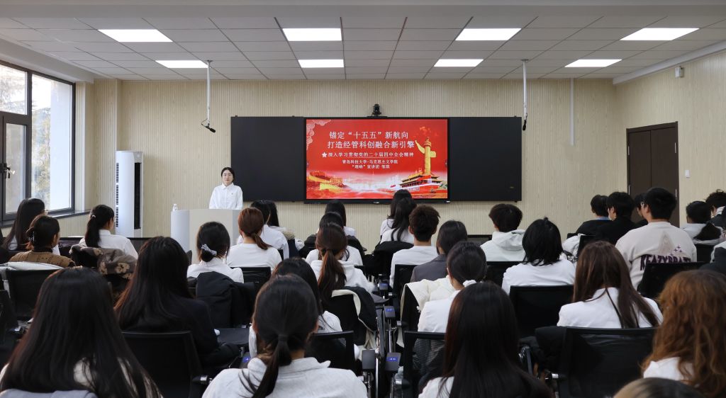 邹琪结合《中共中央关于制定国民经济和社会发展第十五个五年规划的建议》,对“十五五”时期的核心目标、遵循的“六个坚持”原则以及建设现代化产业体系、加快科技自立自强等重点部署进行了深入解读。她特别指出,推动科技创新与产业创新深度融合、促进数字经济与实体经济结合,是培育新质生产力的关键路径,也与经管类学科发展密切相关,鼓励同学们关注前沿、夯实专业,在未来发展中主动融入国家战略。