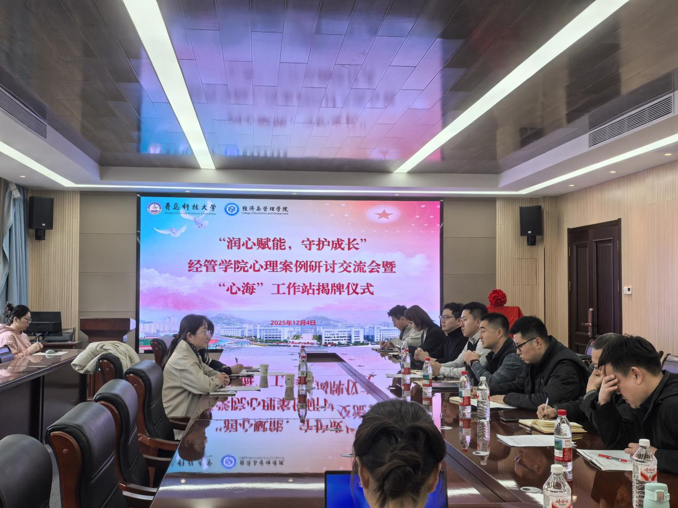 于12月4日在经管楼313会议室举行心理案例研讨交流会暨“心海”工作站揭牌仪式。学生处副处长尤亭亭、心理中心张岍老师、辅导员及部分班主任代表参加,活动由北京赛车PK10