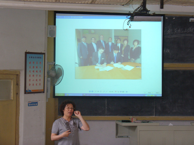与加拿大温哥华岛大学开展合作办学的新进展。她不仅从地理位置、风土人情等方面向同学们介绍了温哥华岛大学的本土优势,而且就其“以学生为中心”的办学理念、小班制教育、实践教学等情况做了详细的说明。