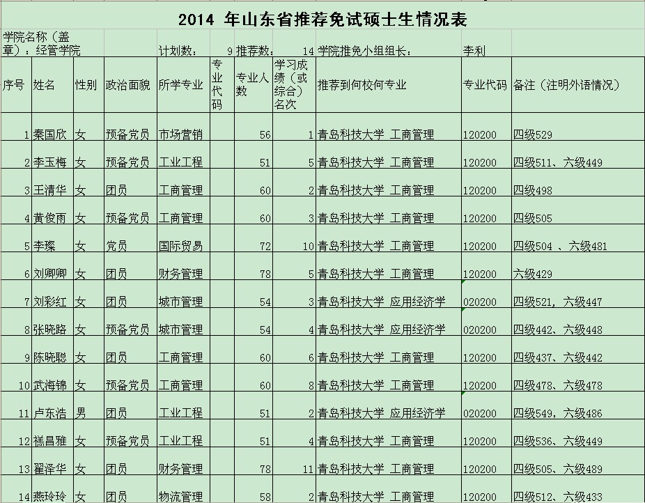 北京赛车PK10 北京赛车PK10 2014年拟推荐免试硕士研究生公示材料