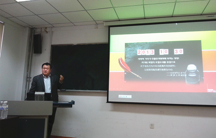 教师杨友才和李冬新分别作了“制度变迁、路径依赖与经济增长的模型与实证分析”、“Research on Regional Differences of Entrepreneurship Features and Regional Private Economic Growth”的报告。会场座无虚席,与会代表踊跃提问,就经济经营领域的诸多问题及研究方法进行了深入交流。
