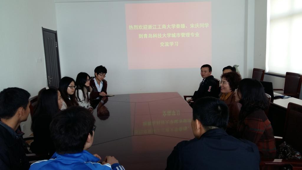 特召开交流学生欢迎座谈会。参加会议的领导及老师有副院长刘树艳,城市管理系教师刘广珠、宫攀、崔铁岩、王小兵、祝晓波、李默。城市管理专业交流学习的两名同学秦臻、宋庆,及城市管理专业2012级、2013级班长苏月健、孙小芬、刘福乐、王怀志也参加了会议。