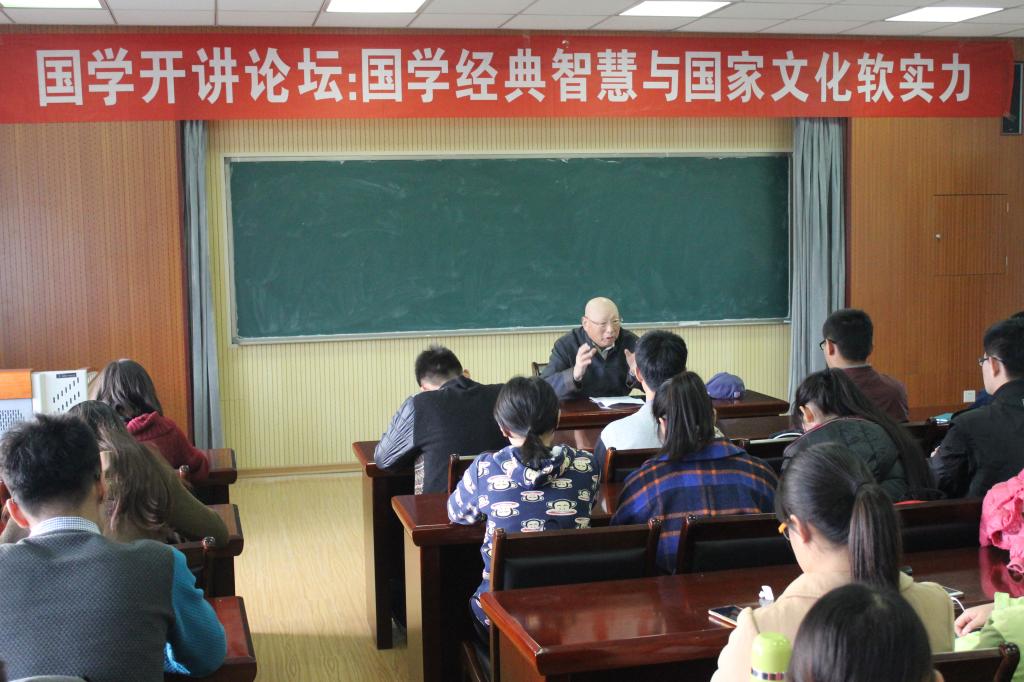 505室为学生作题为“国学经典智慧与国家文化软实力”的报告。