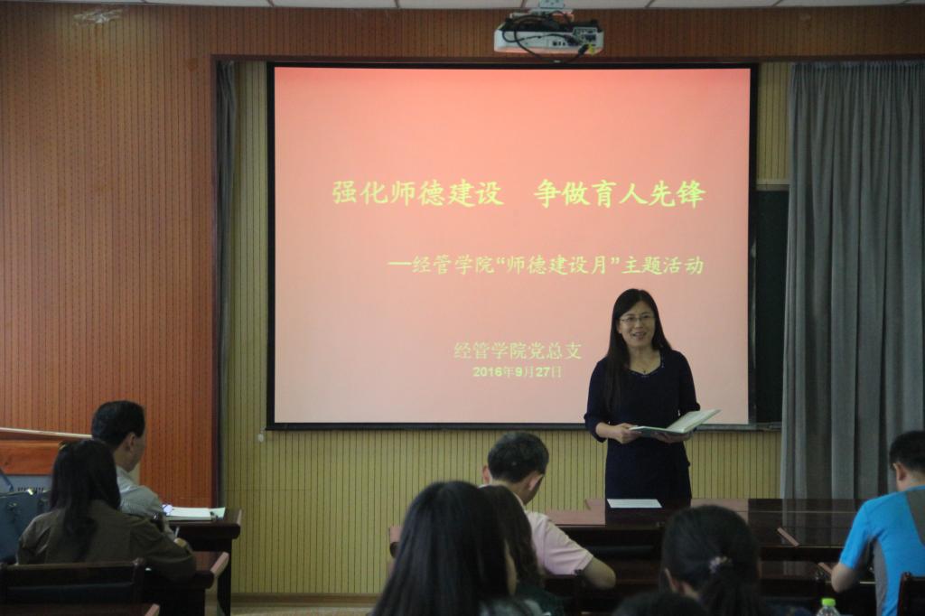在经管楼419会议室举行“强化师德建设争做育人先锋”的主题活动,活动由党总支书记丛海燕主持。
