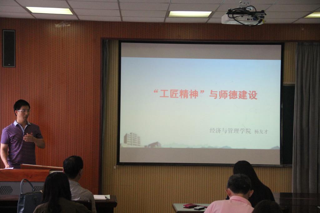教师代表杨友才做了主题为“工匠精神与师德建设”的专题报告。他解读了“工匠精神”的内涵、时代特色和现实意义以及弘扬这种精神的主要途径。工匠精神与师德建设的结合是一个非常有意义和值得深入思考的话题。作为一名中青年教师,杨友才在大会上做了认真而严肃地宣誓:做一个学生成才路上的螺丝钉,为学生的发展和北京赛车PK10