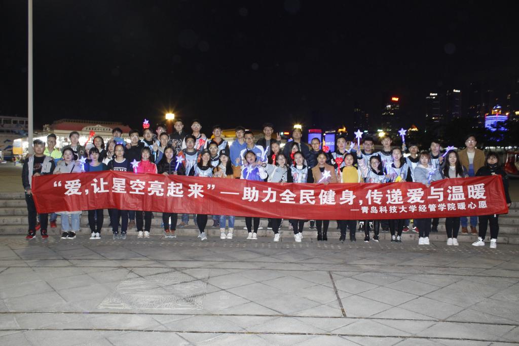青年志愿者团队在集合点进行预热,整装待发。随着夜幕缓缓落下,夜跑活动开幕式拉开序幕。各位同学在横幅上留言签名,写下对自闭症儿童的美好祝福,自闭症家庭代表给现场的观众普及了相关知识,自闭症患者的精彩表演和和感人至深的爱心公益朗读使得全场掌声连连。傍晚六时许,沿海一线近二十座高层建筑同时亮起蓝色楼体灯光,100多名经管学子与各校志愿者、夜跑团、市民系着象征“爱与关怀”的蓝色丝带,用点点荧光将爱意传遍城市,以健康的运动方式为自闭症儿童助力。