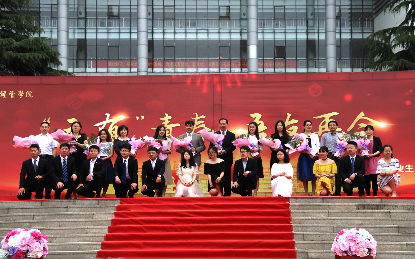 开幕式伊始,院长王志宪教授作了题为《五有青春,吾友再会》的毕业季致辞,教师代表接受毕业生献花并发表毕业寄语;四名学生代表分别从学习楷模、创业达人、科技创新和志愿服务方面进行了我与科大的四年主题演讲,21名省级优秀毕业生进行了《请老师们放心》诗朗诵,表达对老师们四年来辛勤培育的感恩对美好祝愿。接下来,毕业生们盛装出场,依次走过红毯,在签名墙上留下名字,纪念在科大的青春,展现了经管学子有活力、有特色的积极向上的精神风貌。