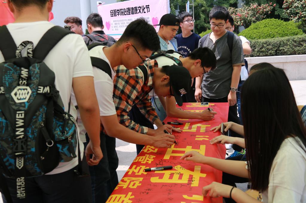 开展系列活动,营造良好氛围。组织开展大学生职业生涯规划、大学生恋爱攻防战等专题讲座,引导学生合理规划学习生活;组织开展“时光信函”——写给一年后的自己、励志心理电影短片欣赏、21天养成计划等多项团体辅导项目,引导学生认识自我、发现自我、寻找真我;开展“我爱我”大型签名活动,推出心理知识展,加大微信推送宣传,营造关注心理健康的良好氛围。系列活动的开展受到学生的热切关注,激发了学生们养成良好态度与行为方式的热情,有利于促进学生身心共同发展。
