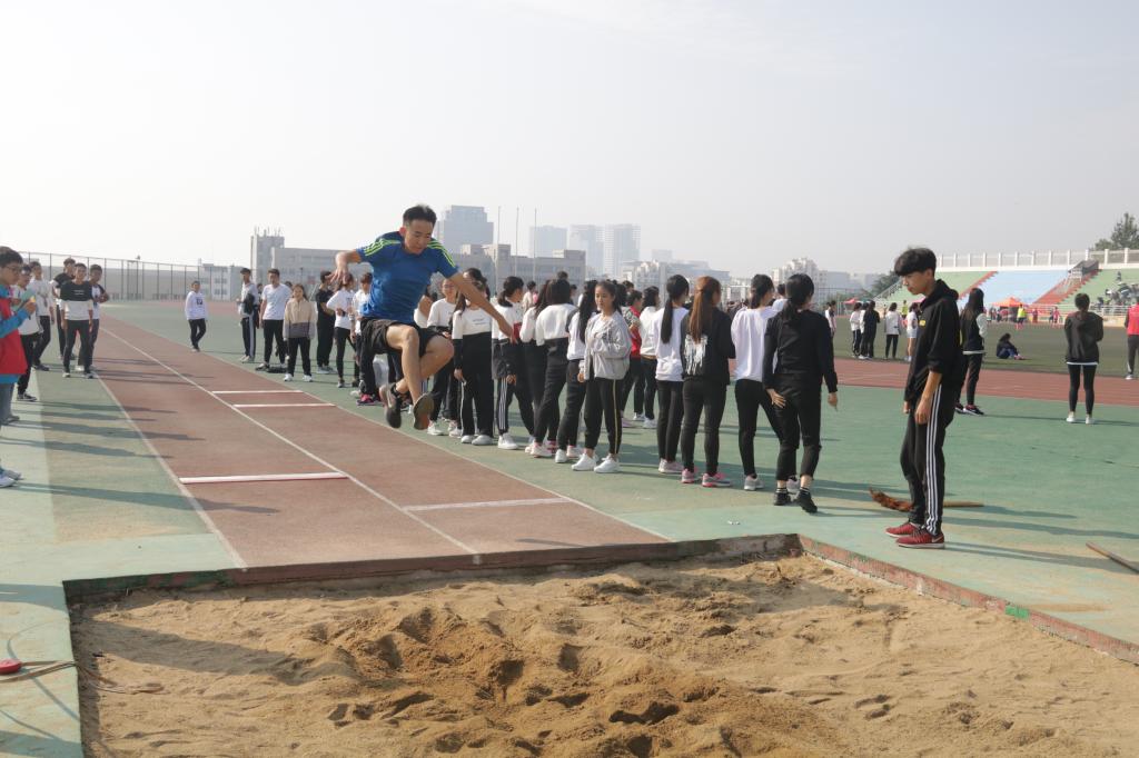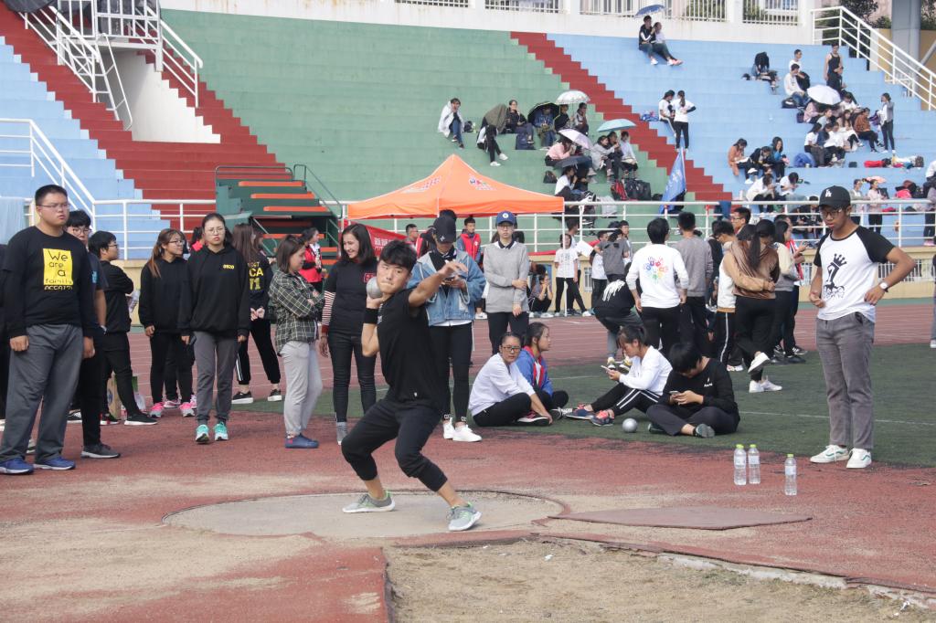 开幕式结束后,各项赛事有条不紊地进行。本届运动会依次进行了田径项目和趣味项目比赛,共有175名运动员参加田径项目,300余名同学参加趣味项目。田径赛场上,运动员们奋勇争先、顽强拚搏,分别在铅球、跳远、100米、200米、400米、800米和1500米等个人项目中展开角逐。