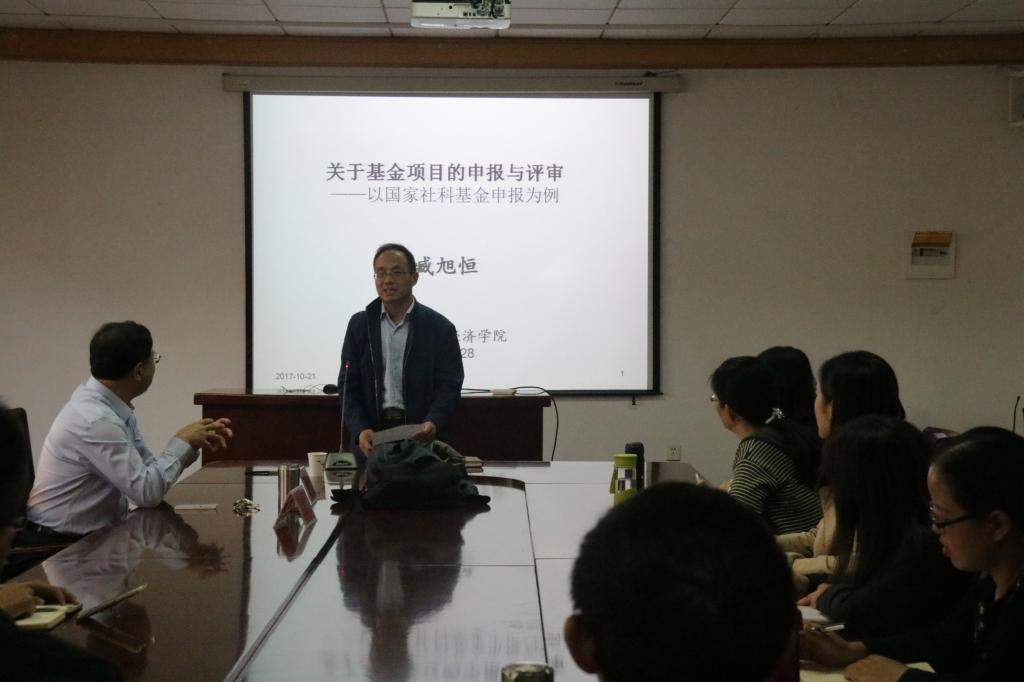 报告结束后,臧教授认真详细的解答了老师们所提出的问题,并指出尽管国家社科基金各个评审环节都相对比较严格,但他建议各位老师不要遇到申报失败就放弃,要坚持申报,秉承科研人不轻易言败的精神,在研究的道路上奋发前行。