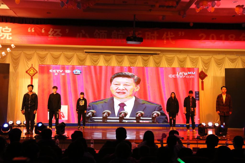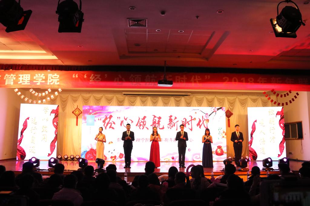 2018年新年联欢晚会于崂山校区第二报告厅成功举行。校工会主席郭曰铎、学生处副处长周宪锋、教务处副处长王泽鹏、保卫处副处长严增兴、团委副书记杨小明、北京赛车PK10