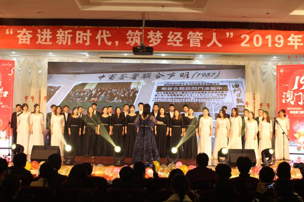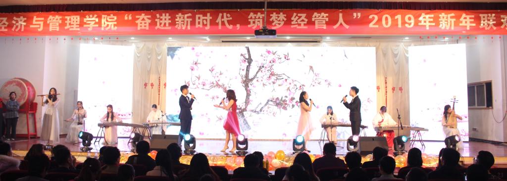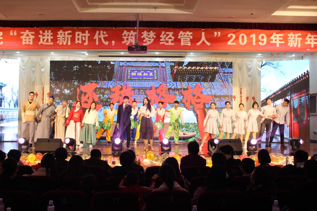 “奋进新时代,筑梦经管人”2019年新年联欢晚会于崂山校区第二报告厅成功举行。校党委副书记张元利、组织部部长聂法良、统战部部长陈洪宗、学生处处长陈刚、保卫处处长王伟、后勤处处长郭永、工会副主席徐瑞成、团委副书记张玉、宣传部副部长李鲲鹏、北京赛车PK10